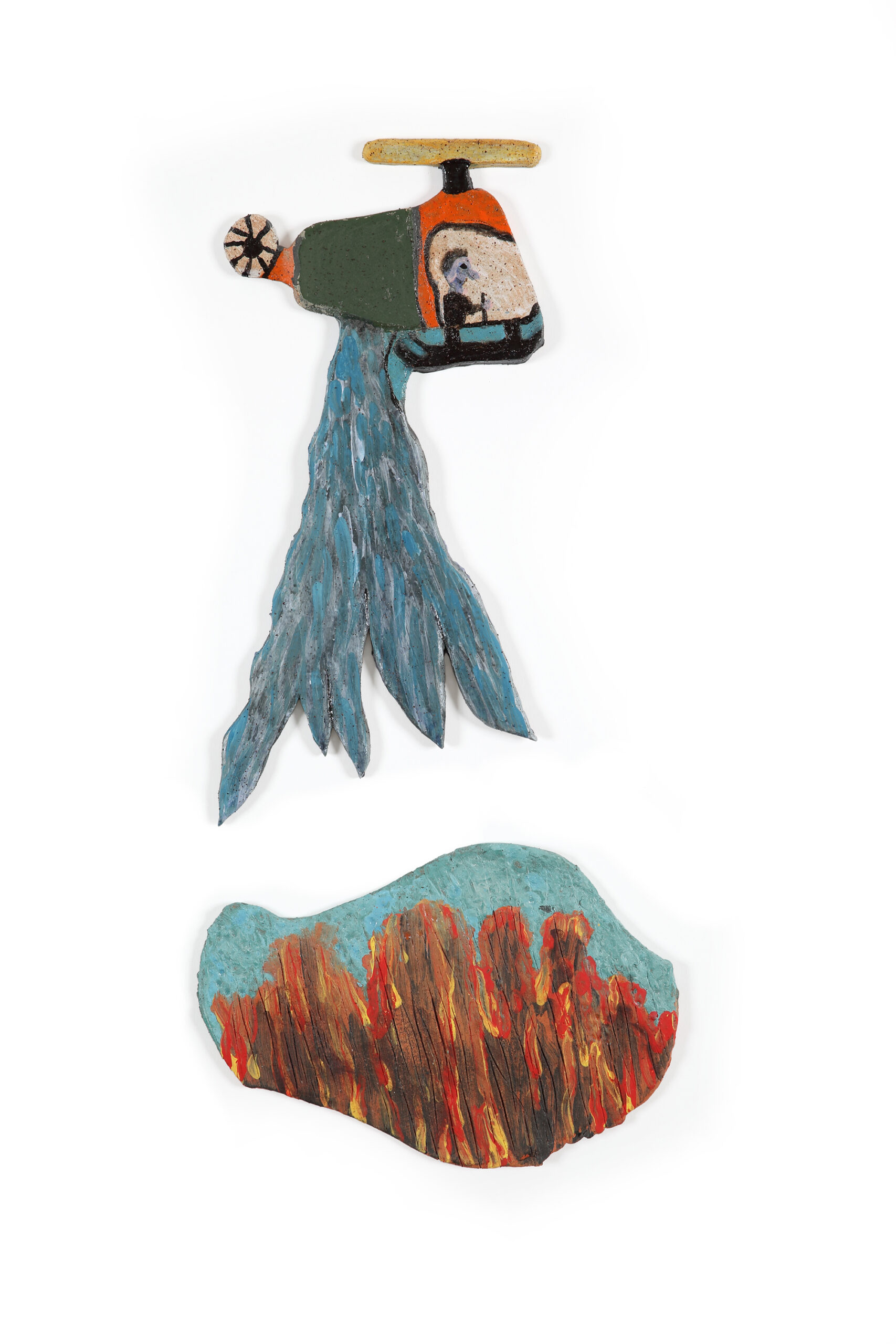 Billy Tjampitjinpa Kenda started painting in the Bindi Mwerre Anthurre Artist Studio in 2004. He primarily paints his mother’s country, Jay Creek, in the West MacDonnell Ranges. More recently Billy has been depicting scenes of remote communities and town camps, as the scope of his work continues to expand to encompass all things unique to Central Australia. Drawing inspiration from the increasing population and traffic within the Central Desert Region, Billy started adding trucks and cars to his textured landscapes in 2008. Soon after followed aeroplanes, helicopters and even the odd flying saucer, adding to the playful nature of his work. Interacting with these subjects are the animals that have always been there- the kangaroos, the emus, the lizards, the eagles. They look on from a perch on a rock or from the shade of a tree; they flee from oncoming traffic. They function as observers and survivors of this changing place.