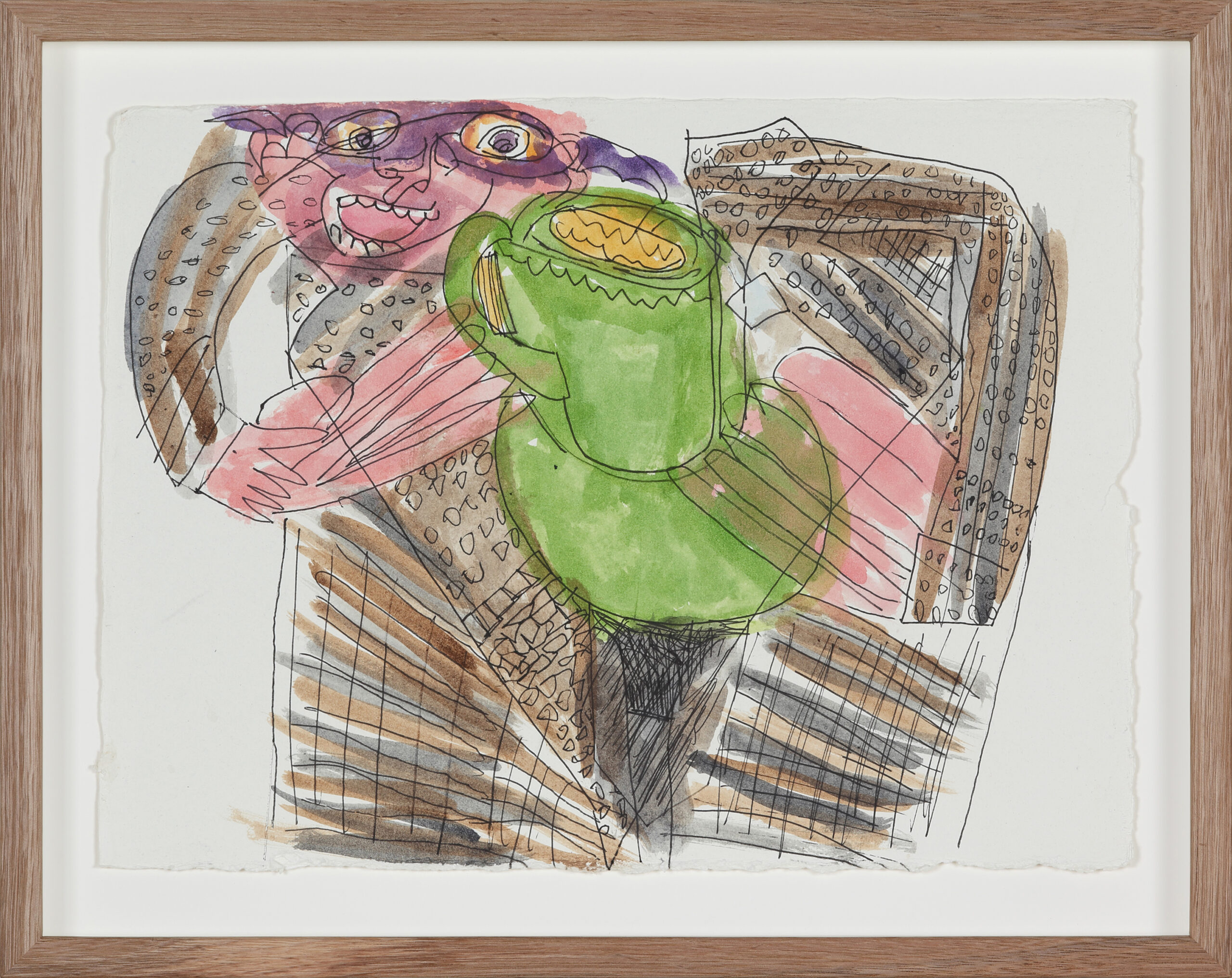 Hailing from Kaltukatjara (Docker River) and currently based in Mparntwe (Alice Springs), Conway Ginger brings a sense of humour and unfiltered energy to his art practice. Known for dynamic ink and wash works on paper, Conway captures everyday desert life. Through a vibrant use of line, Conway shares his passions, from football to music, and the world around him. He draws inspiration from a range of sources – newspapers including Land Rights News, images from books and magazines, his memory and visits back to Kaltukatjara.