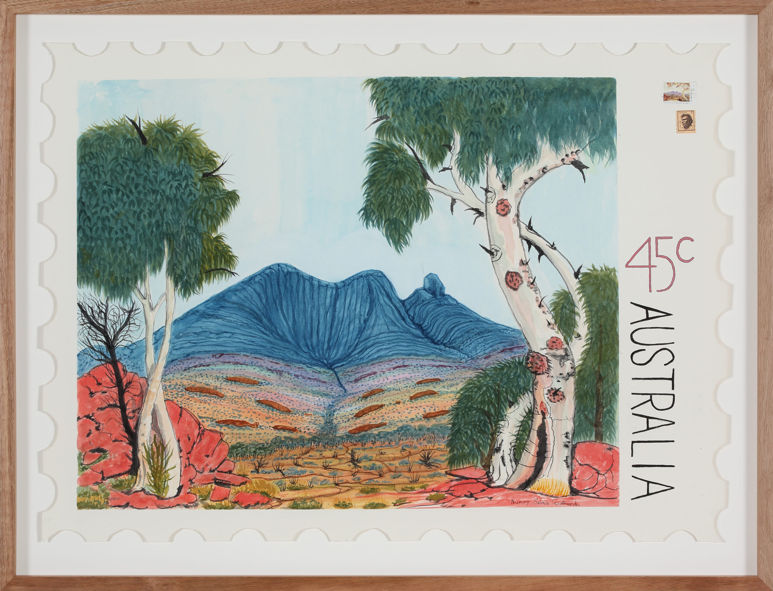 My name is Selma Coulthard and my Aboriginal name is Nunay. I am a Pertama Maduthara Luritja tribe from Urrampinyi (Tempe Downs Station) which is located south-west of Alice Springs in Central Australia. I was born in Alice Springs in 1954 and grew up at Tempe Downs until the Government started to remove half caste kids from their families and put them in mission boarding homes. I was taken to Ntaria where I did my schooling. It is here that my love for art started when I saw Ivy Pareroultja painting Mt. Hermannsburg. In the 1950s my father used to work as a tourist guide at Palm Valley (a spot we called Titjarritjarra) and I used to see watercolour painters working on site. I have always wanted to be an artist and I just hope that my work will be recognised.