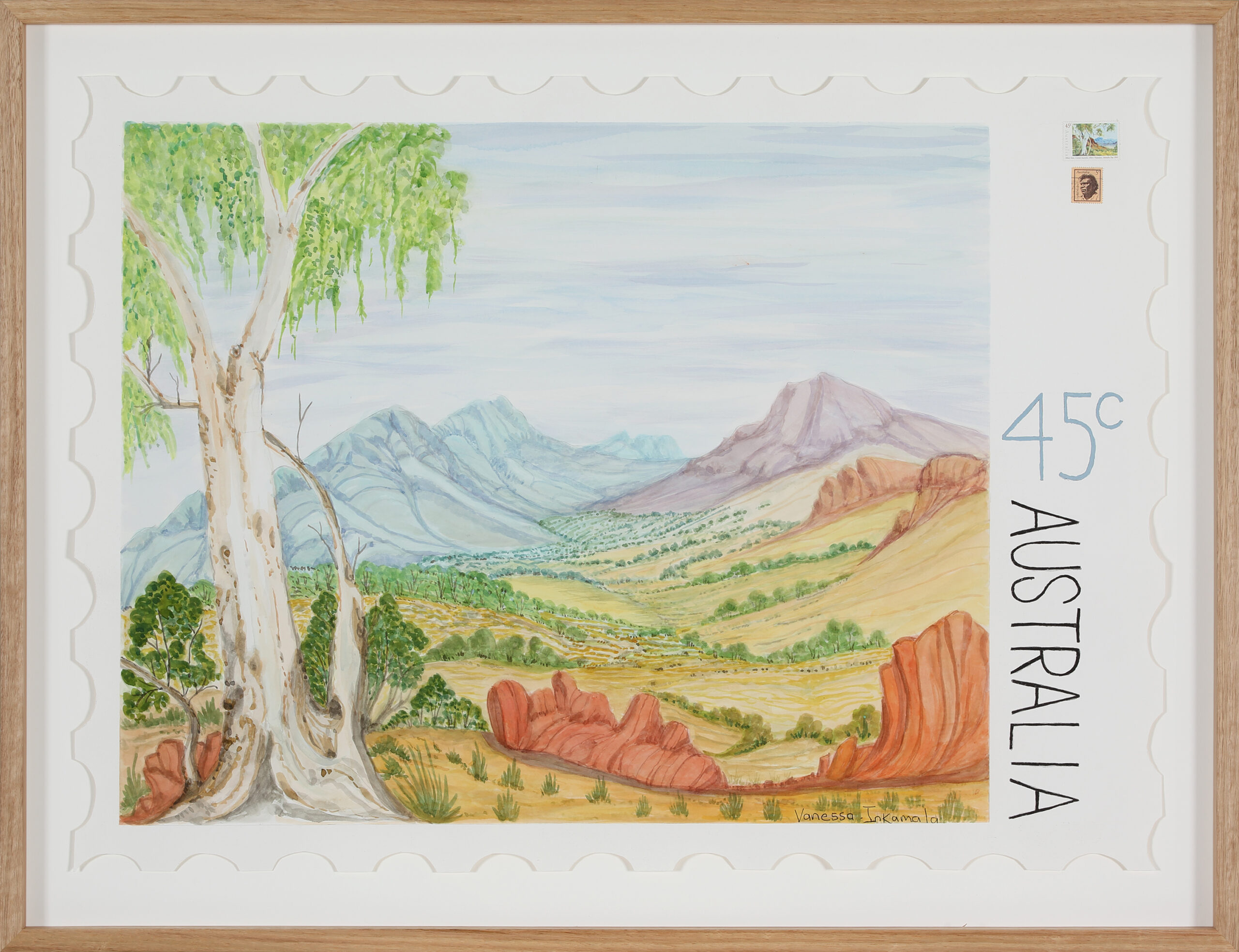 Vanessa Inkamala was born in Ntaria (Hermannsburg) with a rich artistic heritage; her great-uncle is Albert Namatjira, and her aunt, the late Ivy Pareroultja, was also a respected artist. Following in her family’s footsteps, Vanessa’s younger brother, Reinhold Inkamala, is also an established landscape painter. Currently based in Mparntwe, Vanessa dedicates her days to her artistic practice at the Iltja Ntjarra art centre. Her journey with the art centre began in 2010, and her distinctive style quickly captured the attention of major collectors. Her works are now part of esteemed collections including those at the University of Technology Sydney, National Museum of Australia, Art Gallery of South Australia, and Queensland Art Gallery | Gallery of Modern Art.