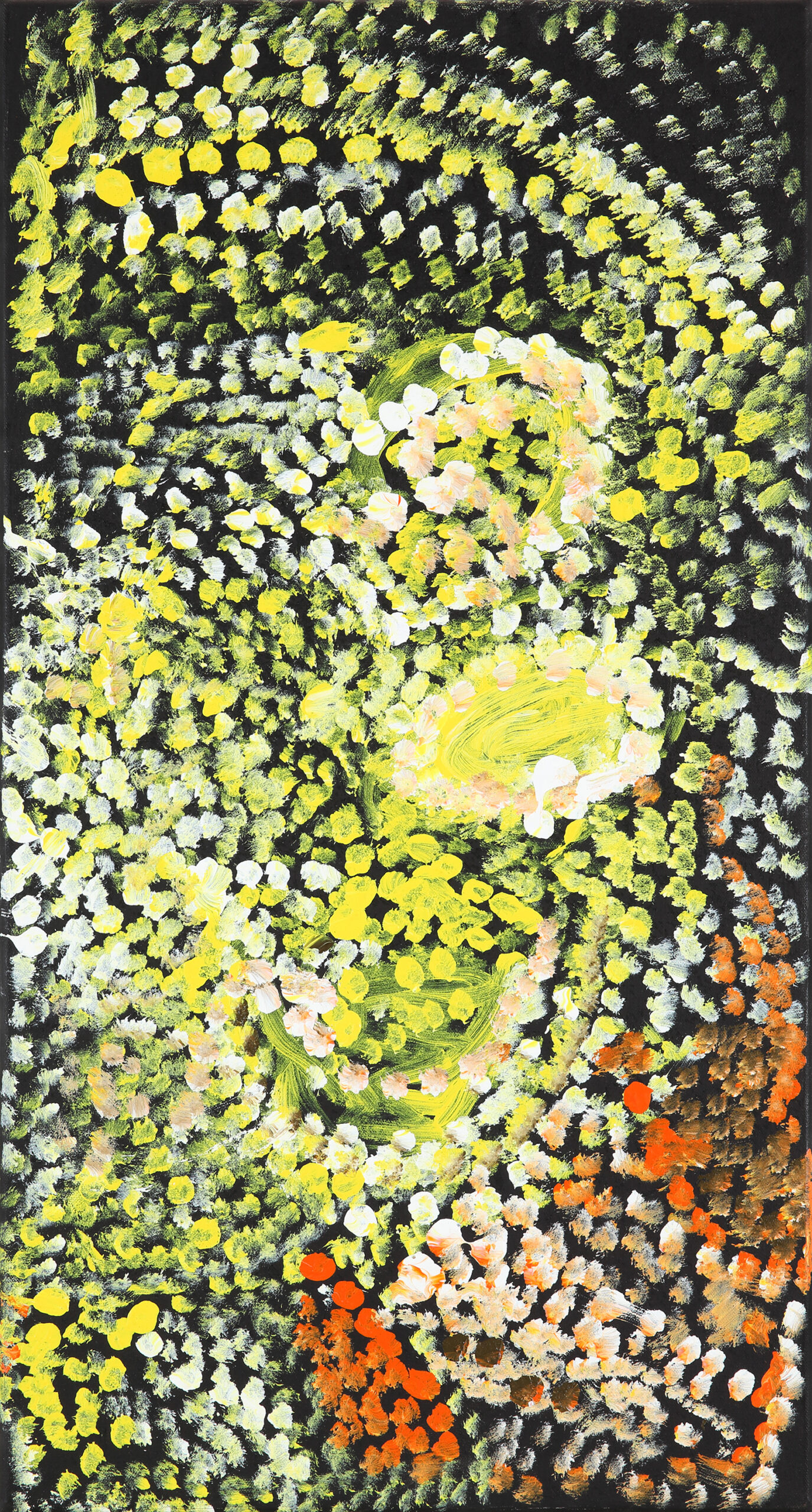 Bonnie Connelly was born in Illurpa, a place near Papulankutja. When she was young her mother took her to Pukatja (Ernabella), later they moved to Angus Downs and then Mutitjulu. Bonnie’s father passed away in Alintjarra. She has a lot of family in Warakurna and in Papulankutja. Bonnie’s father’s country is Papulankutja. Bonnie is now an elderly grandmother and strong cultural woman. She has been painting for many years and has passed her knowledge and skills down to her daughters, Dianne and Marlene, who now paint for Kaltukatjara Art.